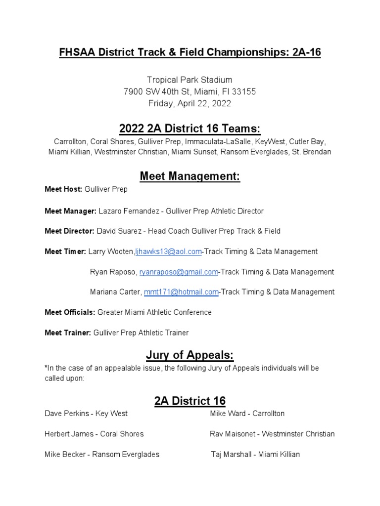2022 FHSAA District Track & Field Championships 2A16 PDF Track
